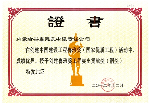 创建鲁班奖工程突出贡献奖