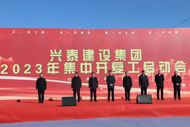 3月1日,兴泰建设集团2023年集中开复工启动会在呼和浩特召开。主会场设于内蒙古大学纪检监察学科和重大科研平台基础建设南校区三期工程建设项目现场,集团所有在建项目以视频方式同步参会。