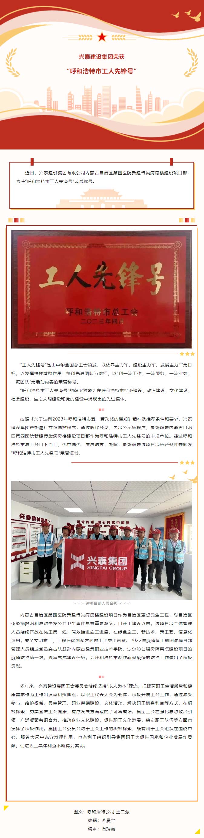 兴泰建设集团荣获“呼和浩特市工人先锋号”