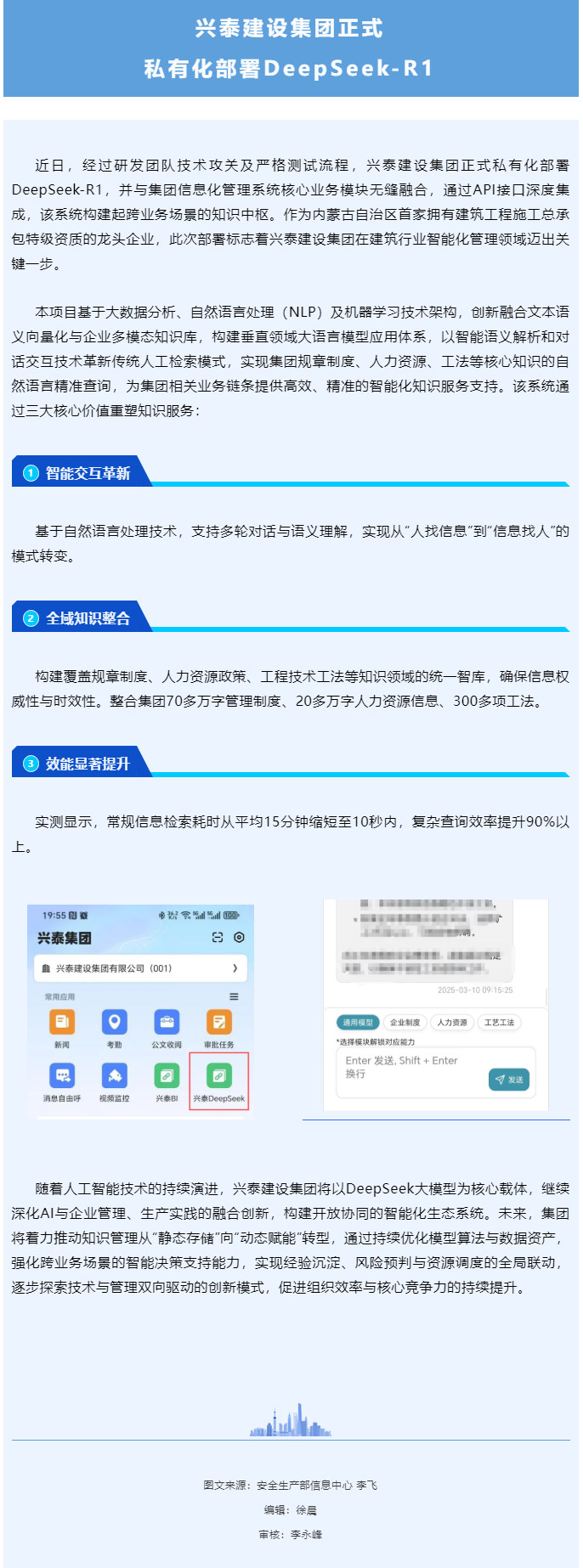 智启新程|兴泰建设集团DeepSeek与业务系统集成赋能企业培育新质生产力