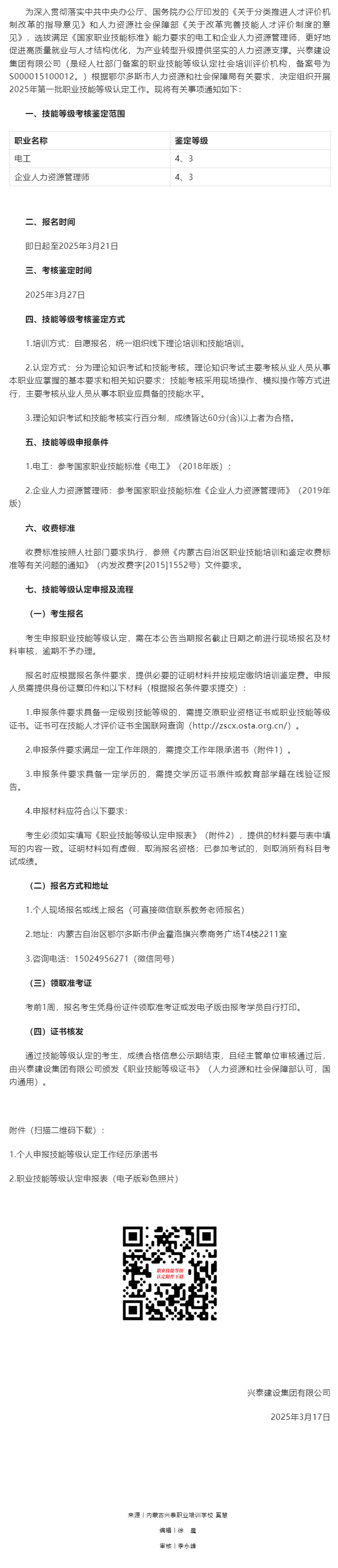 米乐(中国)一站式服务平台2025年第一批职业技能等级认定公告