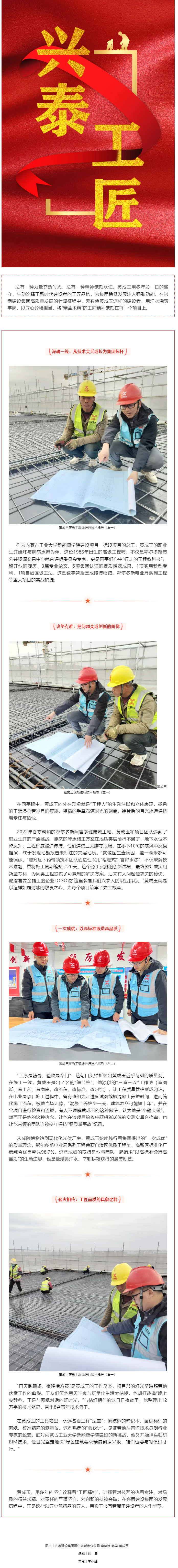 【兴泰工匠】以匠心筑就精品 用实干写就春秋——黄成玉